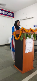 कार्यक्रम का संचालन डा0 कुमुद पांडेय प्रवक्ता हिन्दी विभाग ने किया। कार्यक्रम के समापन पर प्राचार्या ने आशीर्वचन देते हुए कार्यक्रम की सफलता के लिए साधुवाद दिया और छात्राओं ने उत्साहित होकर प्रतिभागियों का मनोबल बढ़ाया।